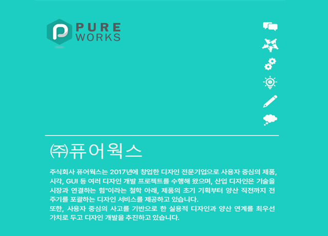 | 기업정보 | 기업명 | (주)퓨어웍스 | 업종 | 제품디자인 |